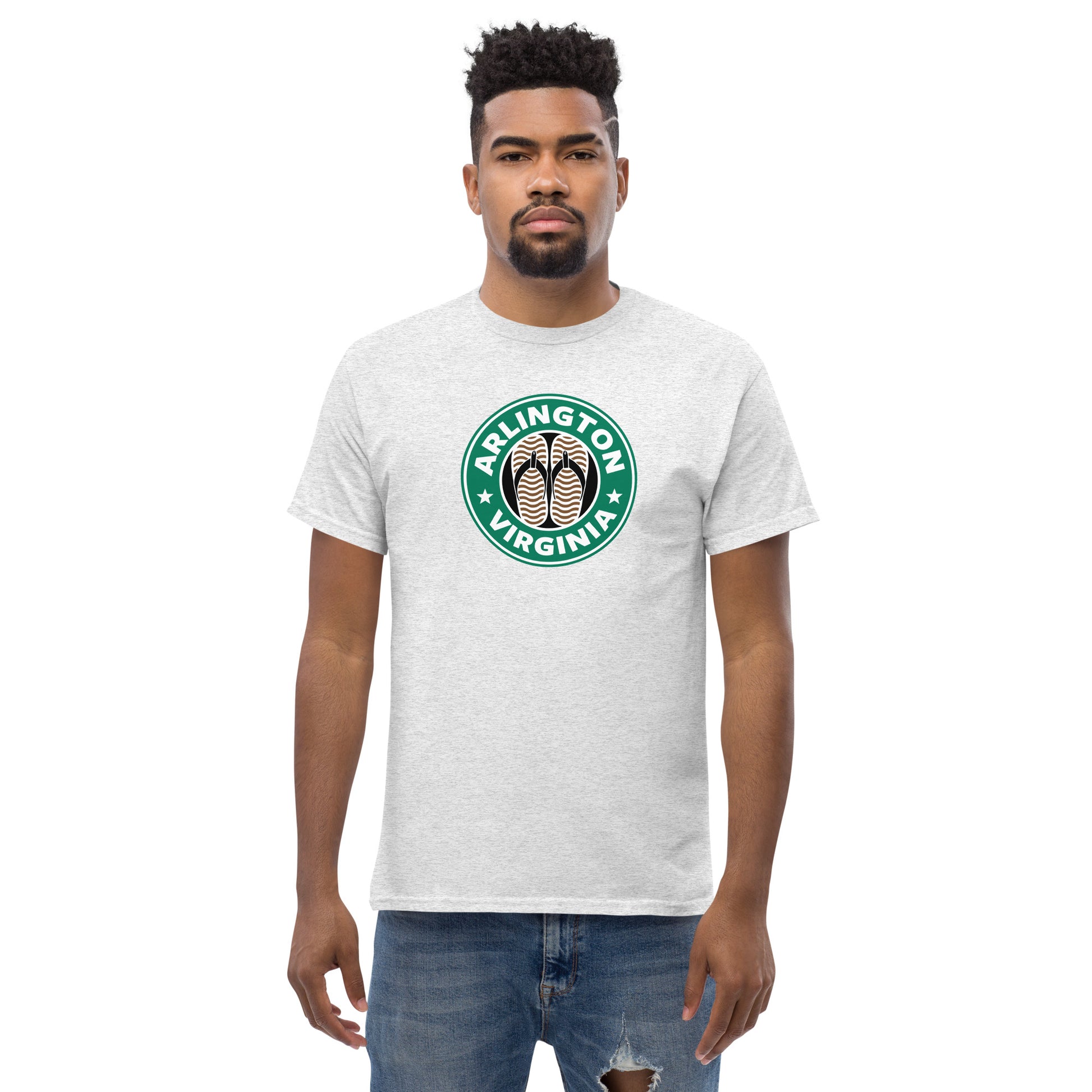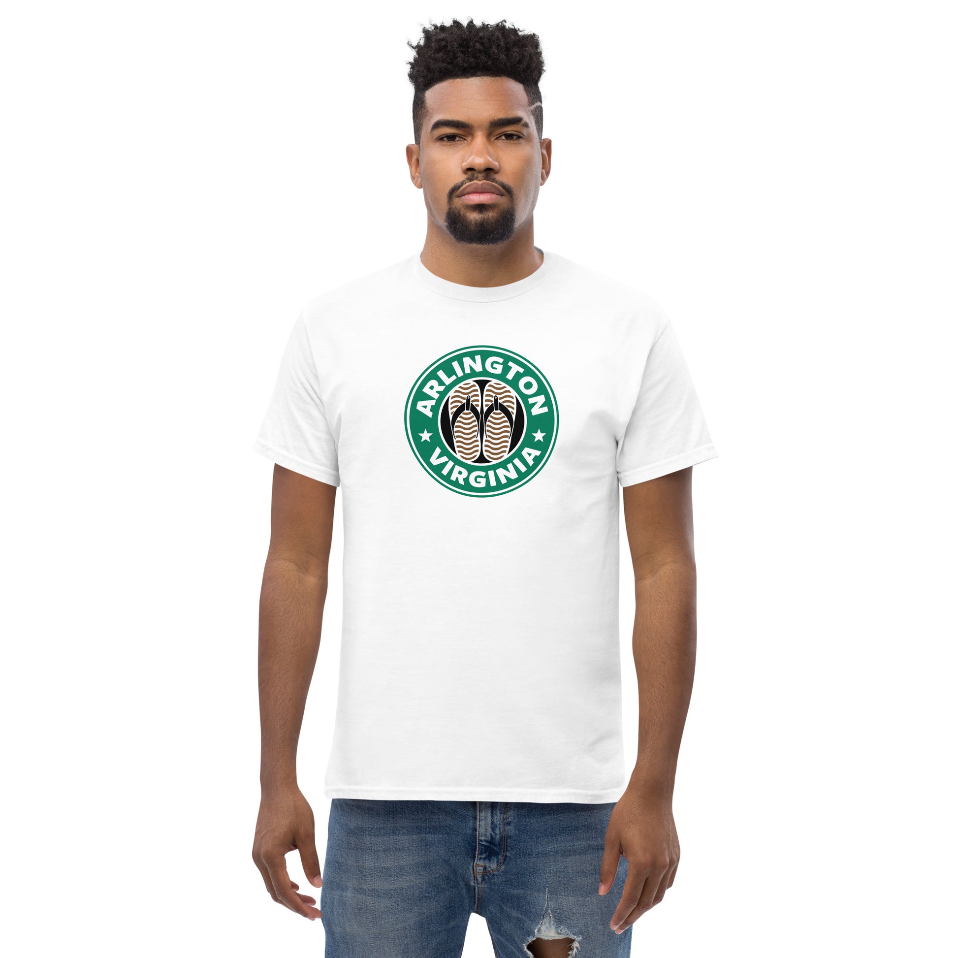 Brown flip flops and chain coffee shops, that's what Arlington does, and that's what this t-shirt is all about.